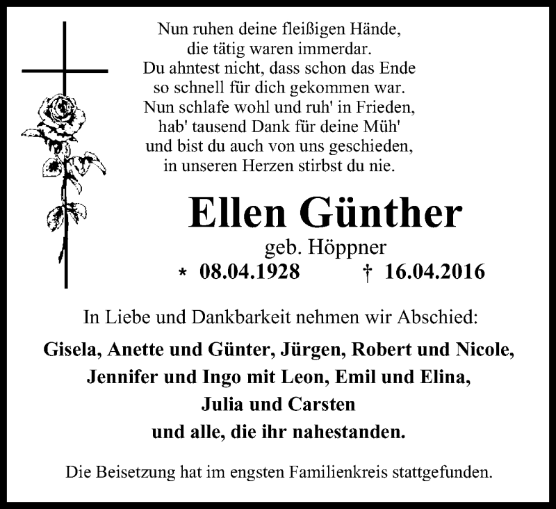Pflanzen Sie einen Gedenkbaum für Ellen Günther