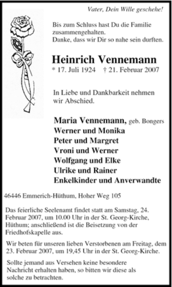 Pflanzen Sie einen Gedenkbaum für Heinrich Vennemann