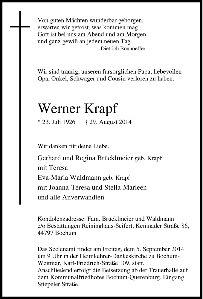 Pflanzen Sie einen Gedenkbaum für Werner Krapf