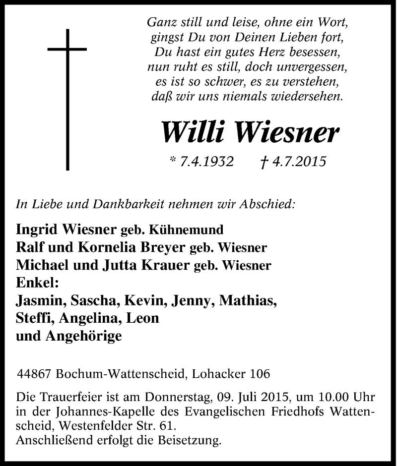 Pflanzen Sie einen Gedenkbaum für Willi Wiesner