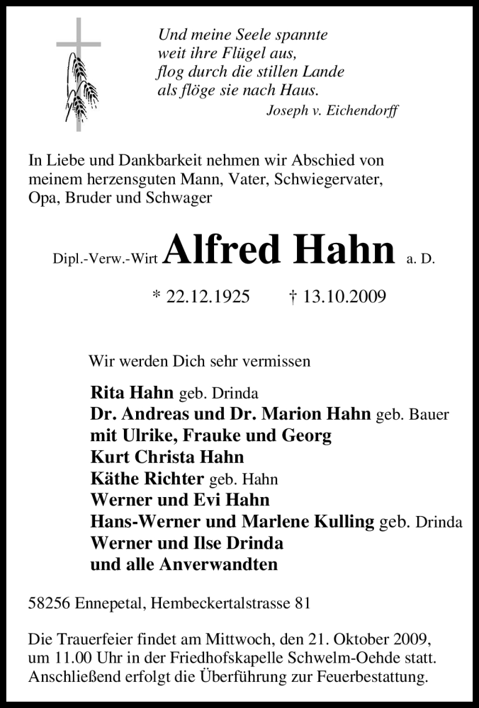 Pflanzen Sie einen Gedenkbaum für Alfred Hahn