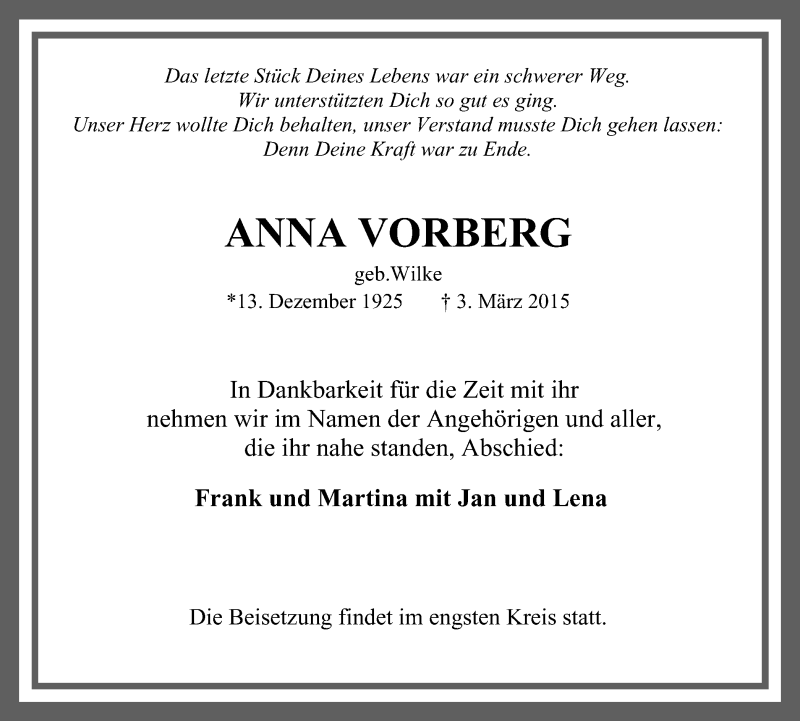 Pflanzen Sie einen Gedenkbaum für Anna Vorberg