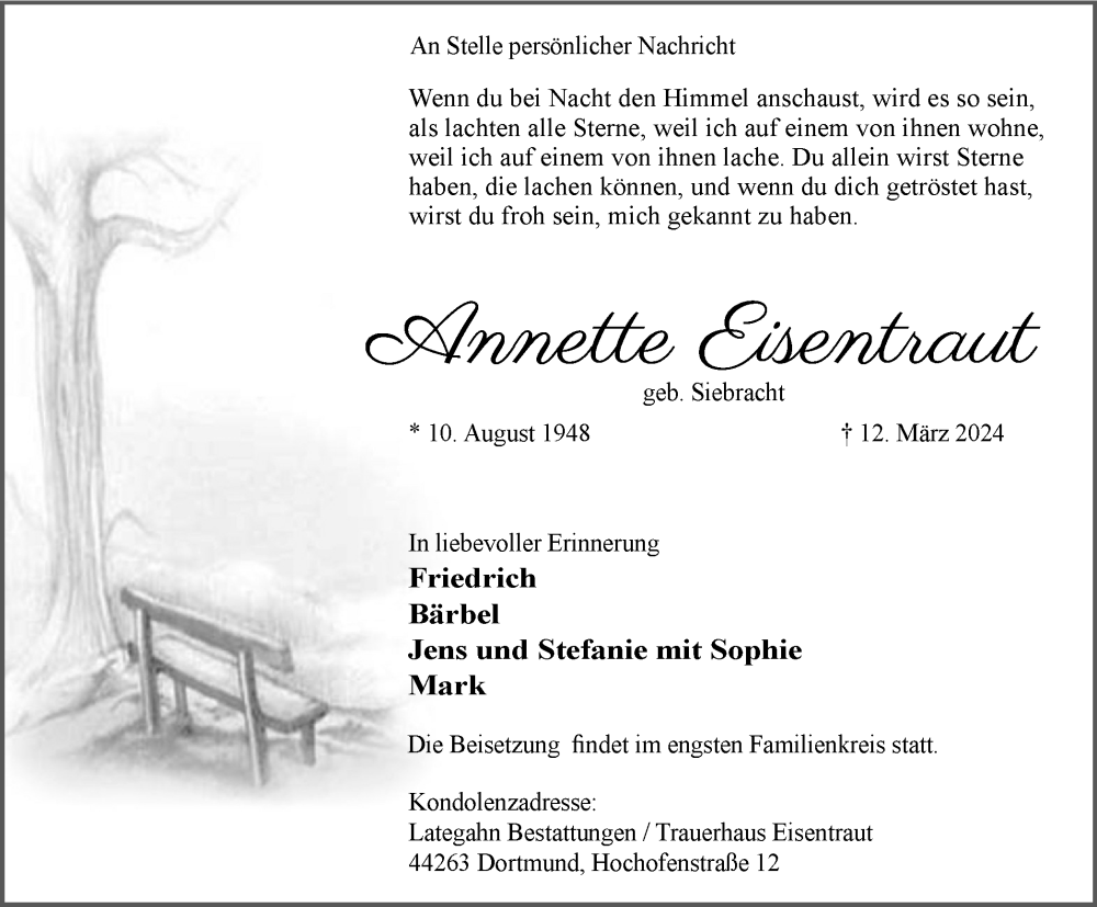 Pflanzen Sie einen Gedenkbaum für Annette Eisentraut
