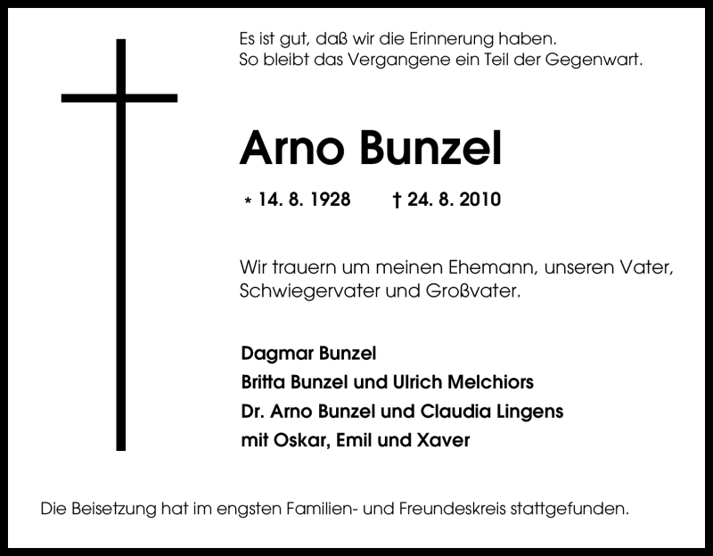 Pflanzen Sie einen Gedenkbaum für Arno Bunzel
