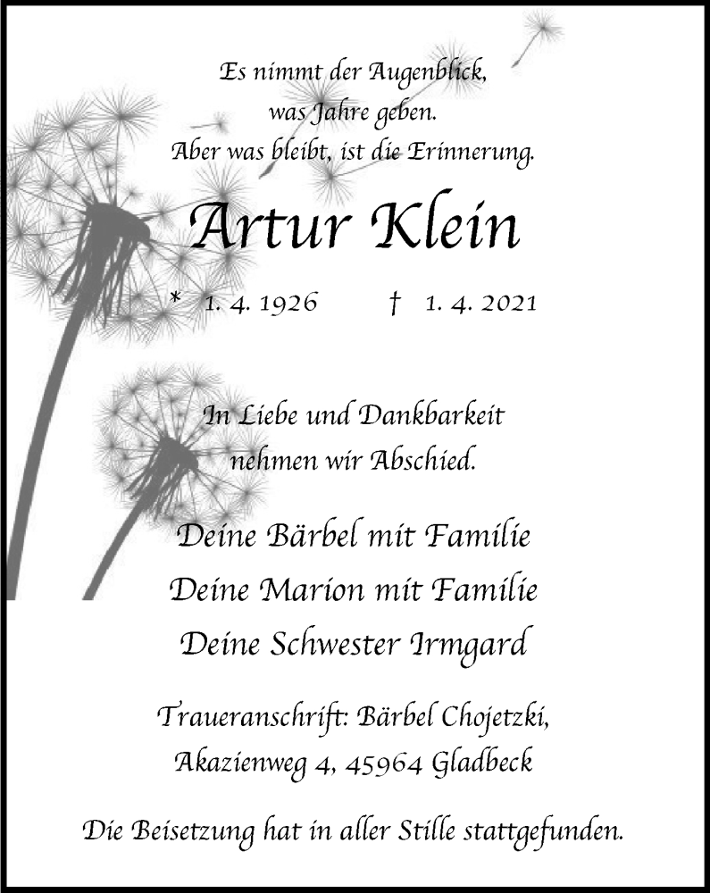 Pflanzen Sie einen Gedenkbaum für Artur Klein