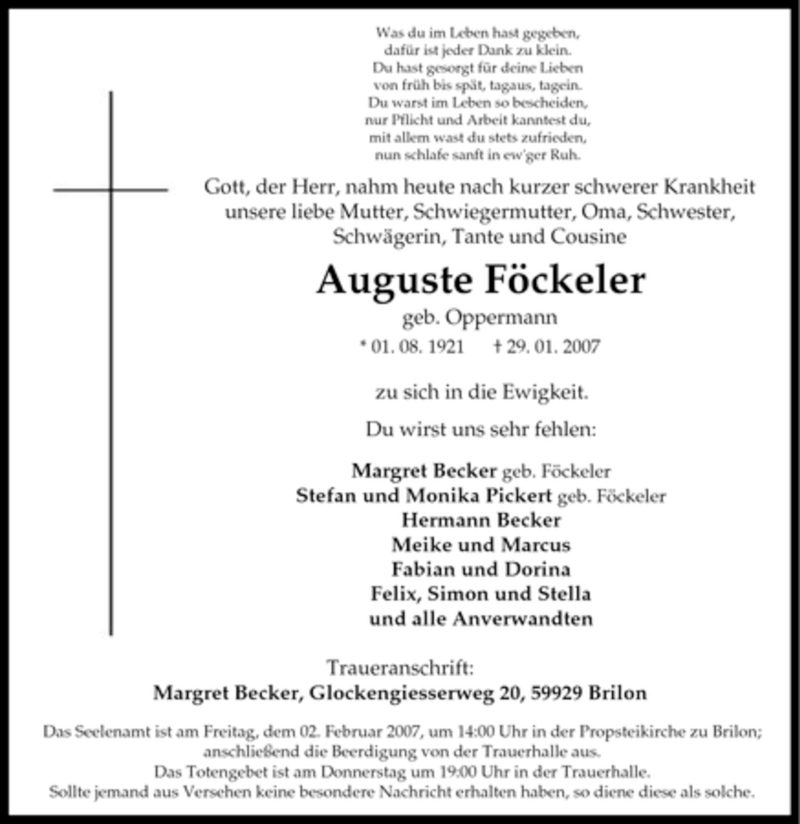 Pflanzen Sie einen Gedenkbaum für Auguste Föckeler