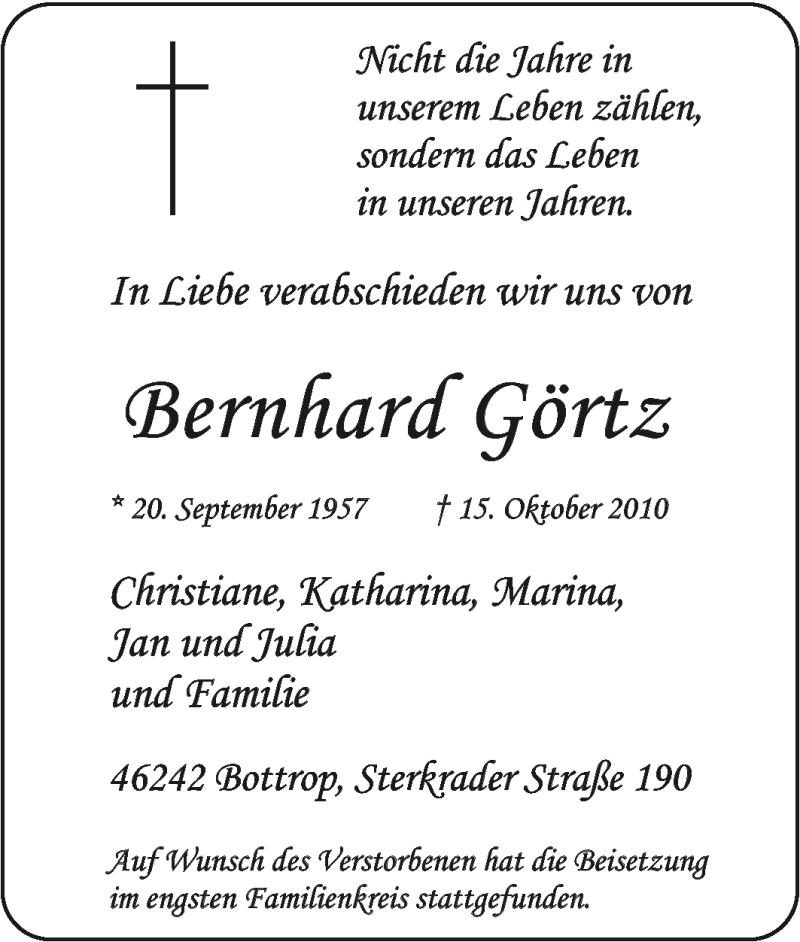 Pflanzen Sie einen Gedenkbaum für Bernhard Görtz