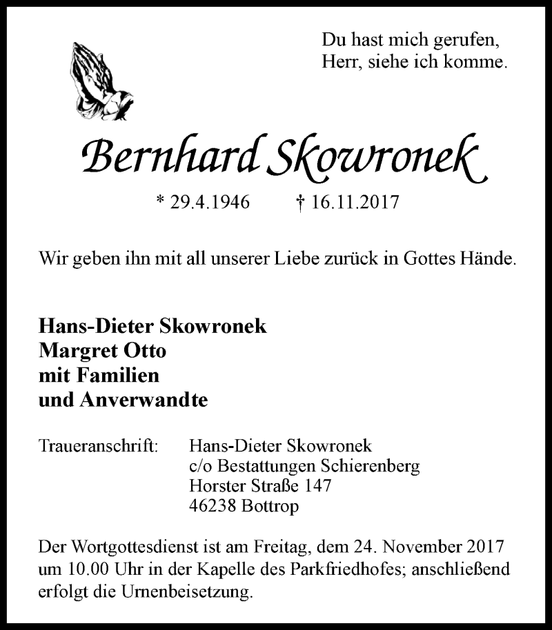 Pflanzen Sie einen Gedenkbaum für Bernhard Skowronek