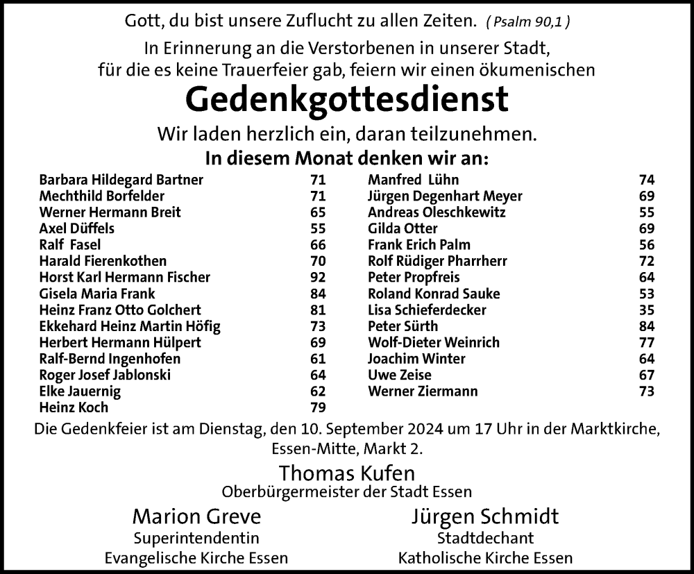Hier finden Sie alle Traueranzeigen aus der Zeitung, die bisher für Bestattungen vom 07.09.2024 erschienen sind. Weitere Traueranzeigen, die in der Zeitung erscheinen, werden hier ebenfalls aufgelistet