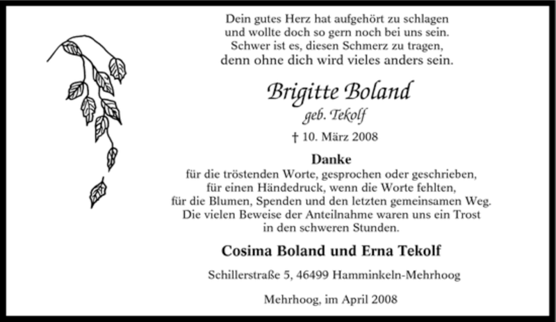 Hier finden Sie alle Traueranzeigen aus der Zeitung, die bisher für Brigitte Boland erschienen sind. Weitere Traueranzeigen, die in der Zeitung erscheinen, werden hier ebenfalls aufgelistet