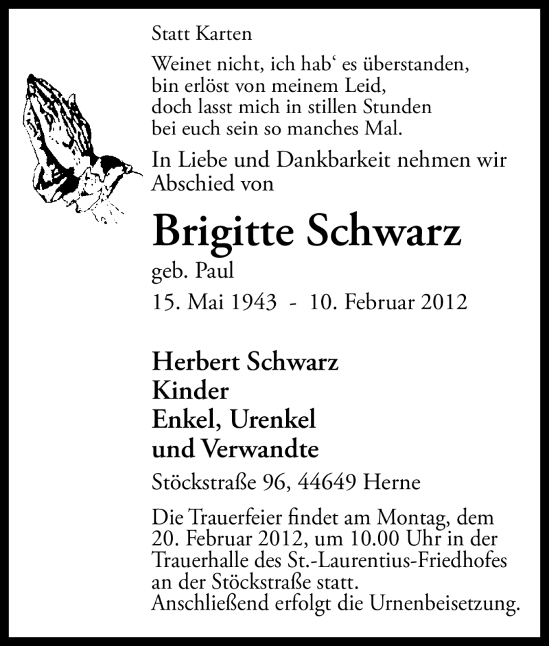 Pflanzen Sie einen Gedenkbaum für Brigitte Schwarz