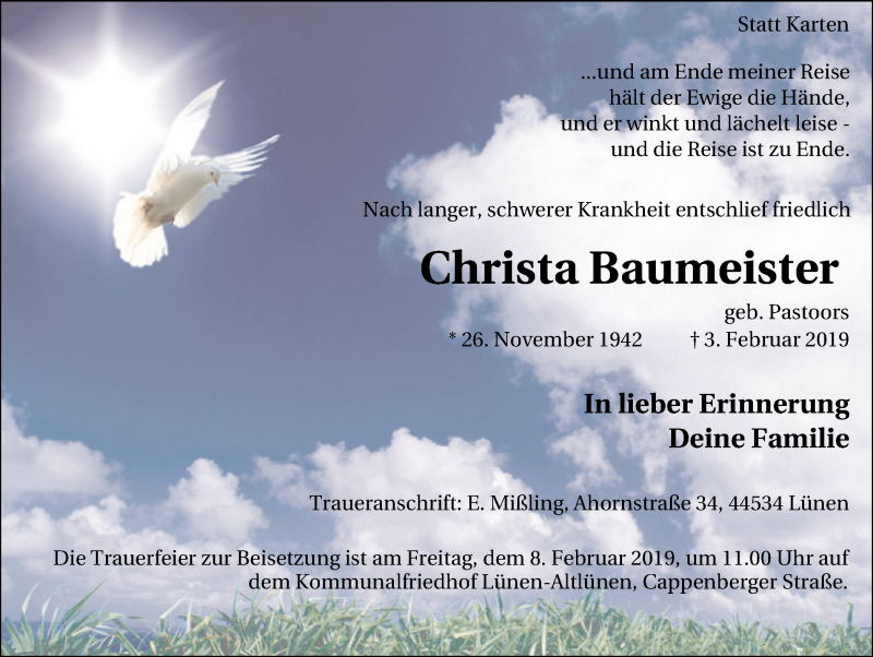 Pflanzen Sie einen Gedenkbaum für Christa Baumeister