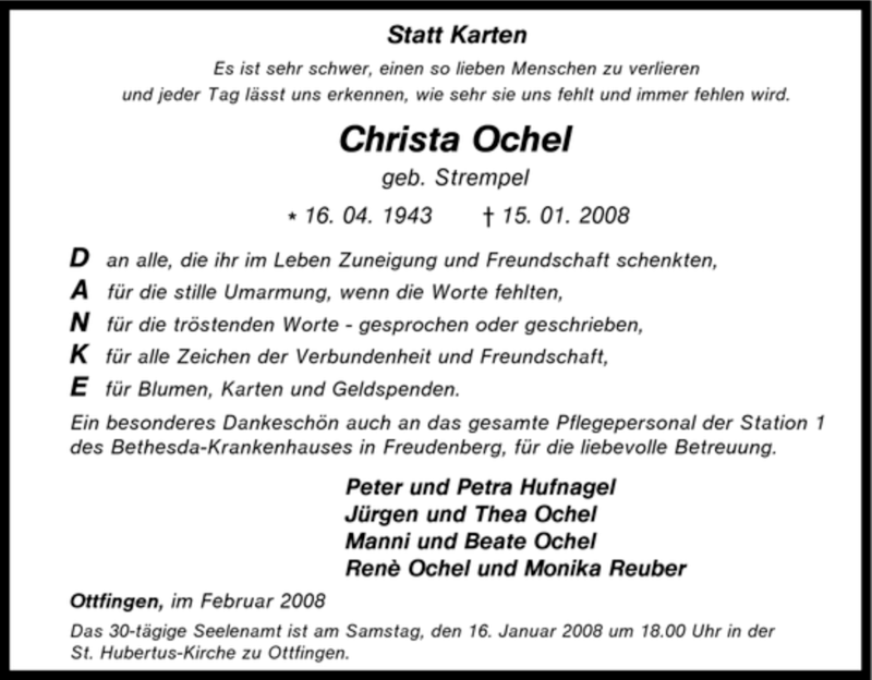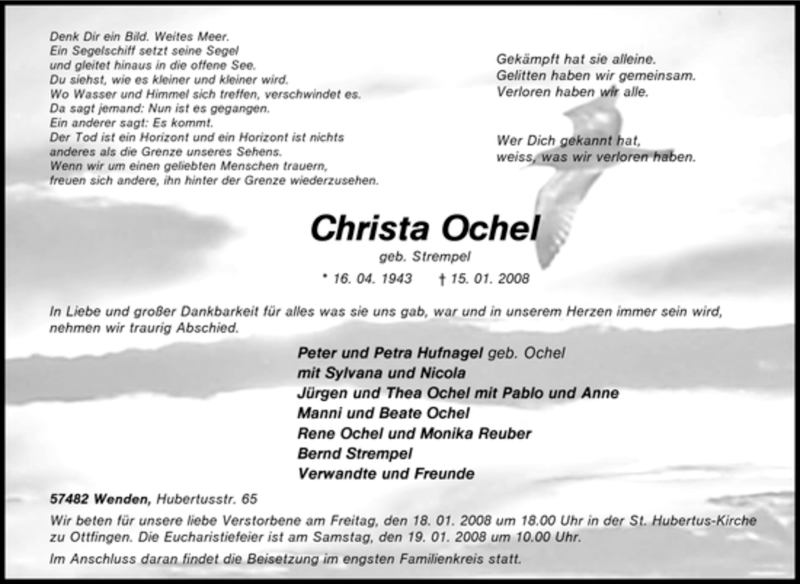 Pflanzen Sie einen Gedenkbaum für Christa Ochel