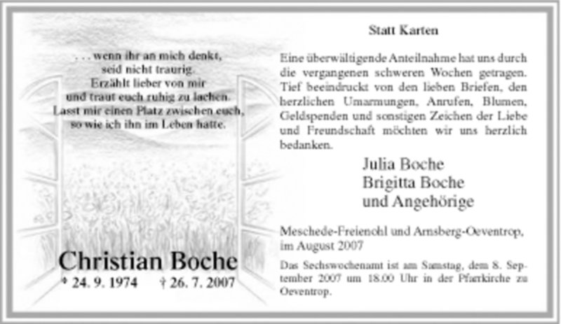 Pflanzen Sie einen Gedenkbaum für Christian Boche