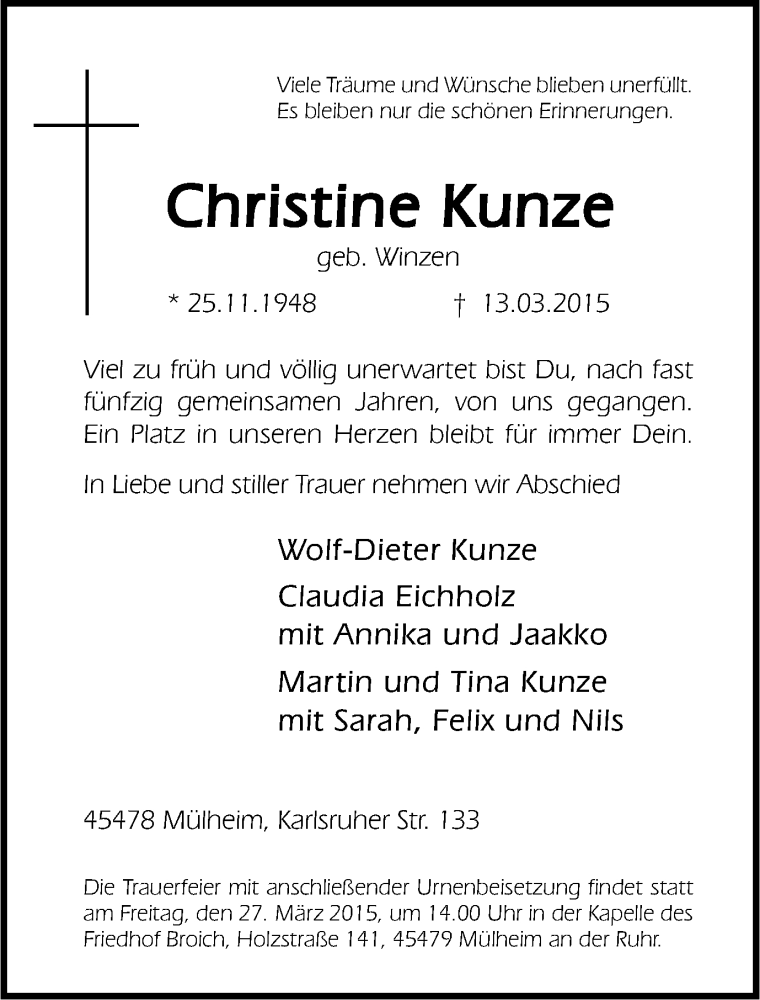 Pflanzen Sie einen Gedenkbaum für Christine Kunze