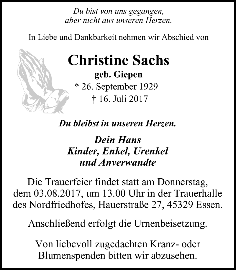 Pflanzen Sie einen Gedenkbaum für Christine Sachs