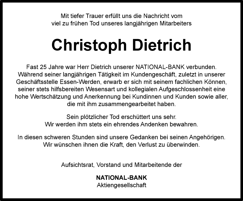 Lieber Christoph, mach es gut da oben am Himmel. Ich werde hier Bremen und der Nationalmannschaft weiter die Daumen drücken. Alles Gute mein Freund