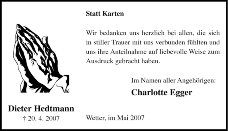 Hier finden Sie alle Traueranzeigen aus der Zeitung, die bisher für Dieter Hedtmann erschienen sind. Weitere Traueranzeigen, die in der Zeitung erscheinen, werden hier ebenfalls aufgelistet
