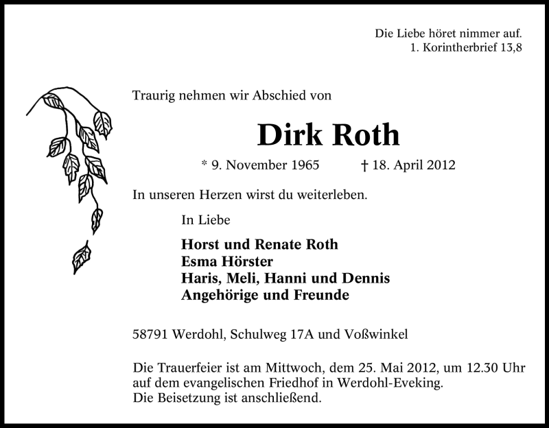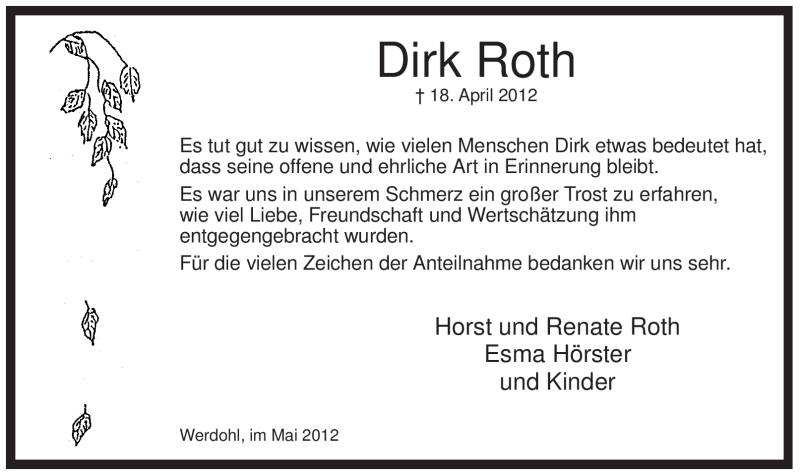 Wenn die Zeit endet, beginnt die Ewigkeit Dirk, wir sind froh, dass wir Dich kennenlernen durften.
