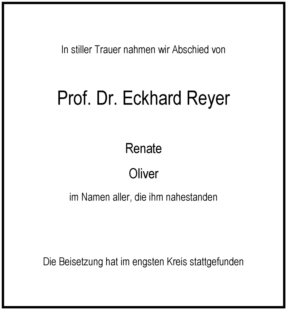 Hier finden Sie alle Traueranzeigen aus der Zeitung, die bisher für Eckhard Reyer erschienen sind. Weitere Traueranzeigen, die in der Zeitung erscheinen, werden hier ebenfalls aufgelistet