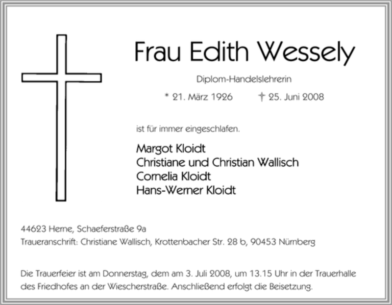 Pflanzen Sie einen Gedenkbaum für Edith Wessely