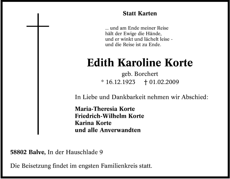 Pflanzen Sie einen Gedenkbaum für Edith Karoline Korte