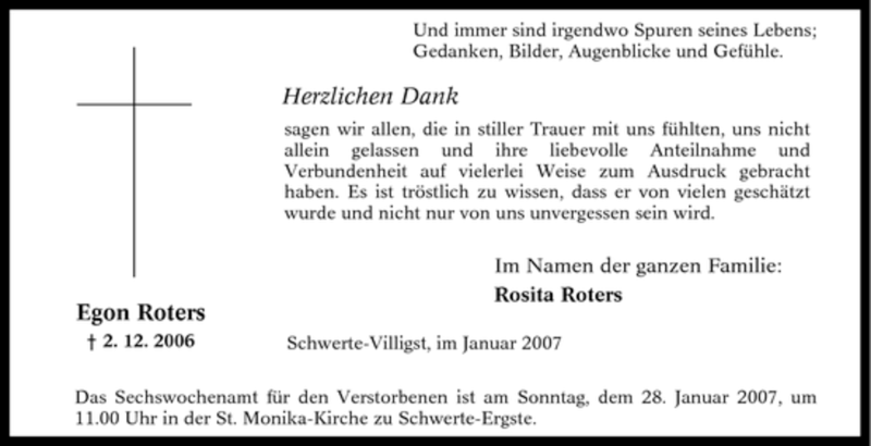 Hier finden Sie alle Traueranzeigen aus der Zeitung, die bisher für Egon Roters erschienen sind. Weitere Traueranzeigen, die in der Zeitung erscheinen, werden hier ebenfalls aufgelistet