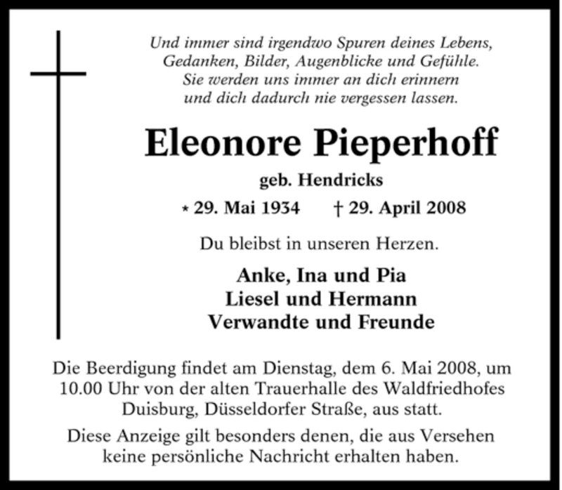 Pflanzen Sie einen Gedenkbaum für Eleonore Pieperhoff