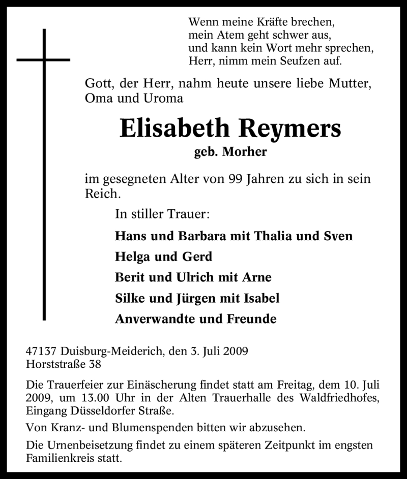 Pflanzen Sie einen Gedenkbaum für Elisabeth Reymers