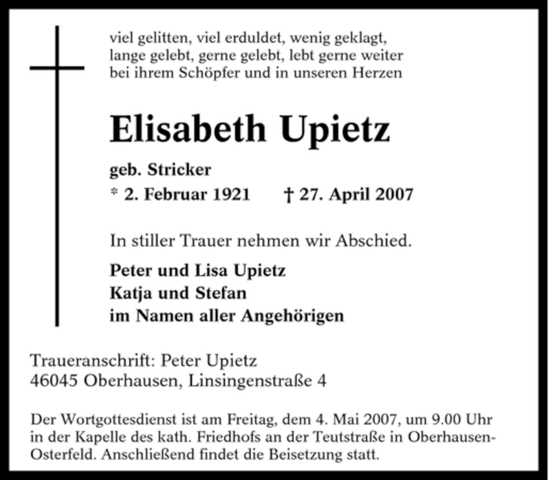 Pflanzen Sie einen Gedenkbaum für Elisabeth Upietz
