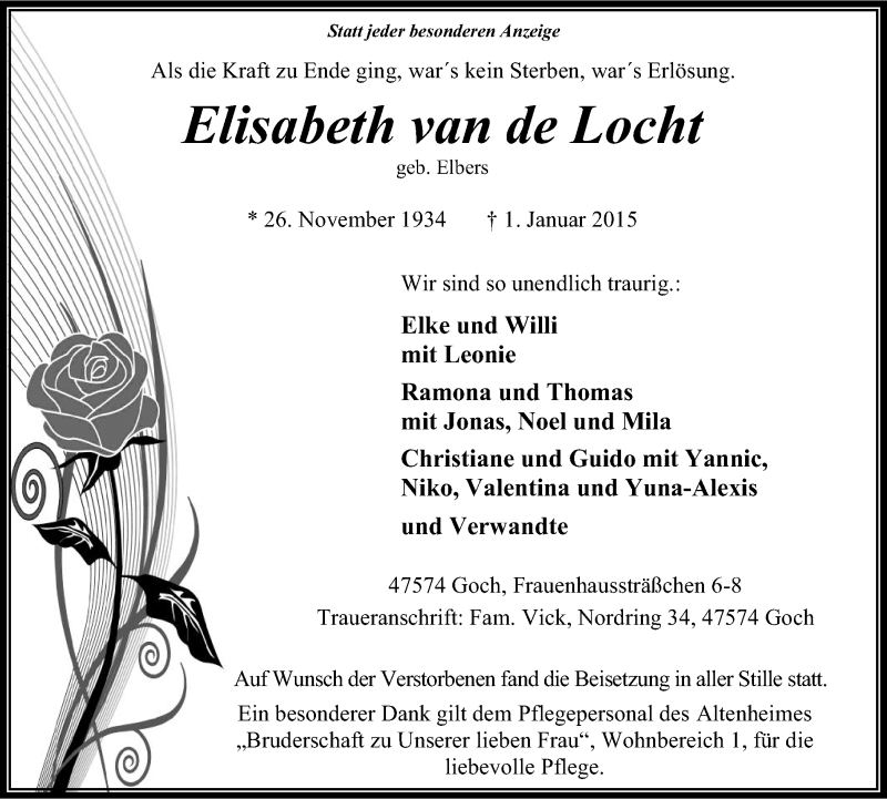 Pflanzen Sie einen Gedenkbaum für Elisabeth van de Locht