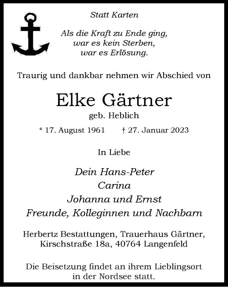 Pflanzen Sie einen Gedenkbaum für Elke Gärtner