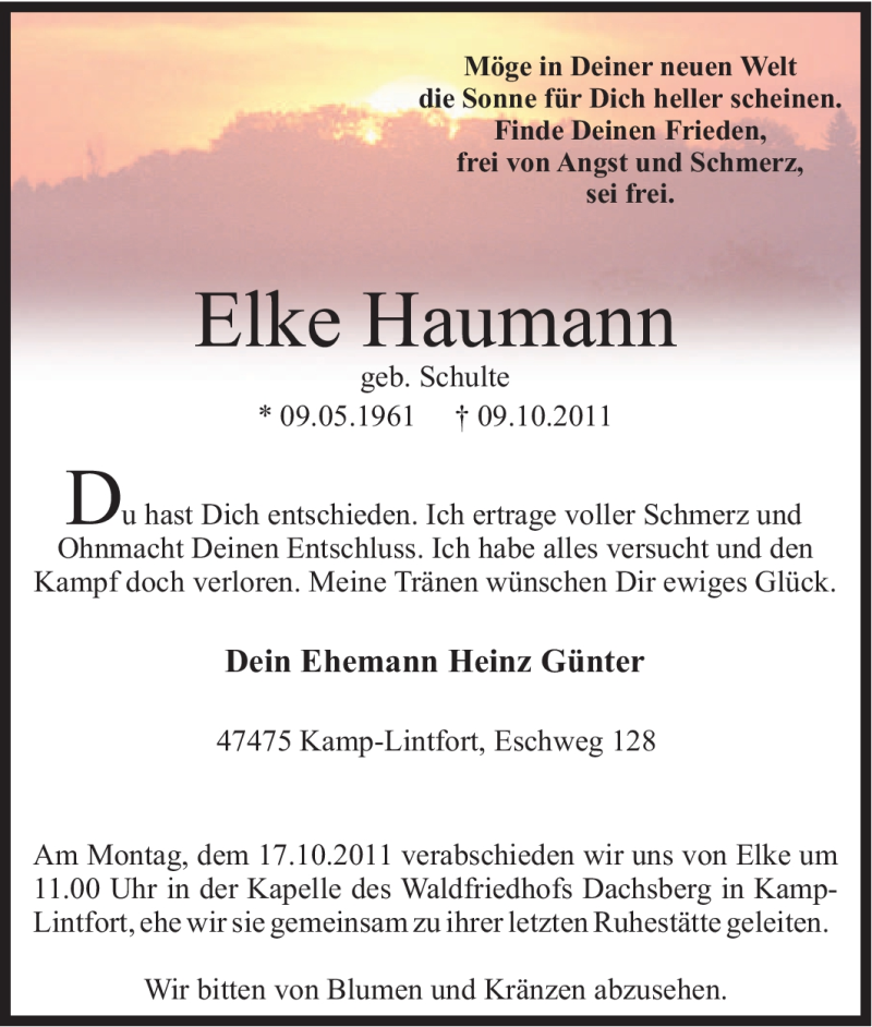 Pflanzen Sie einen Gedenkbaum für Elke Haumann