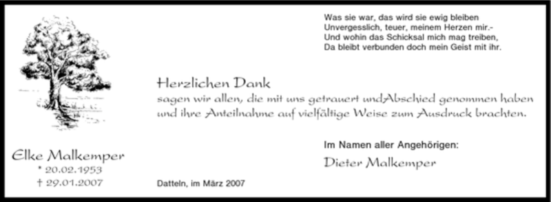 Hier finden Sie alle Traueranzeigen aus der Zeitung, die bisher für Elke Malkemper erschienen sind. Weitere Traueranzeigen, die in der Zeitung erscheinen, werden hier ebenfalls aufgelistet