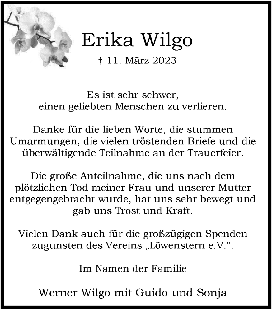 Pflanzen Sie einen Gedenkbaum für Erika Wilgo