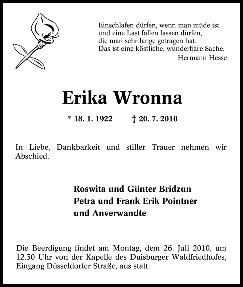 Pflanzen Sie einen Gedenkbaum für Erika Wronna