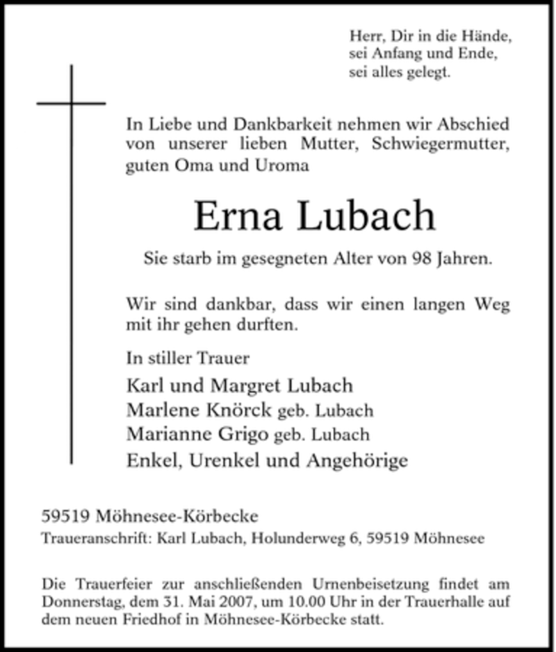 Pflanzen Sie einen Gedenkbaum für Erna Lubach