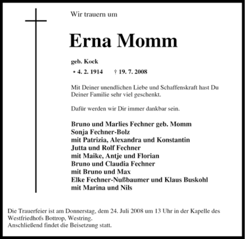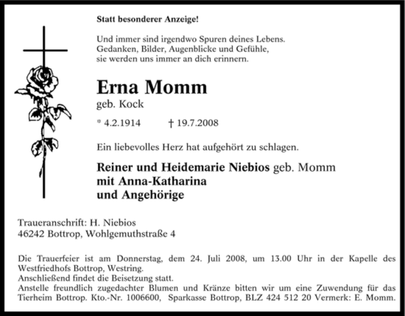 Pflanzen Sie einen Gedenkbaum für Erna Momm