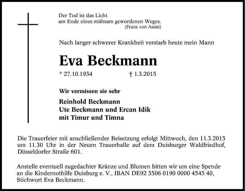 Pflanzen Sie einen Gedenkbaum für Eva Beckmann