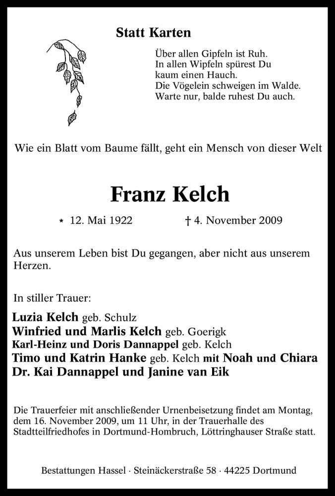 Pflanzen Sie einen Gedenkbaum für Franz Kelch