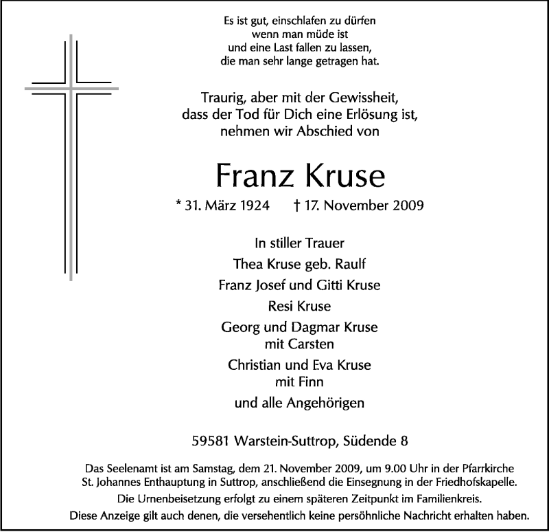 Pflanzen Sie einen Gedenkbaum für Franz Kruse