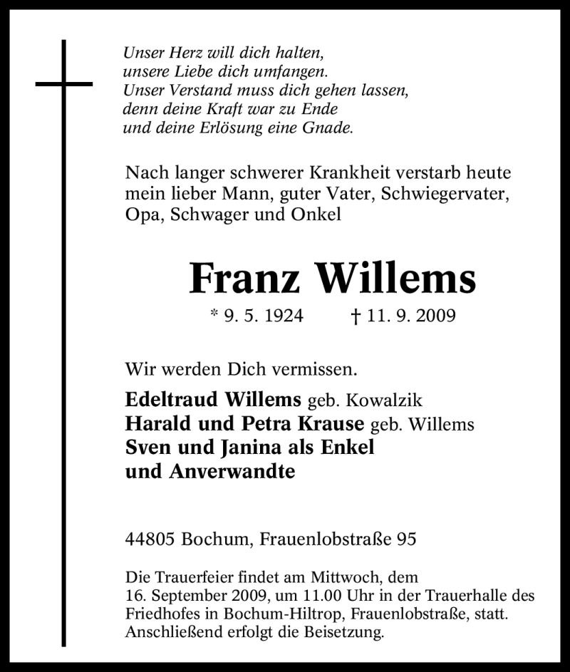 Pflanzen Sie einen Gedenkbaum für Franz Willems