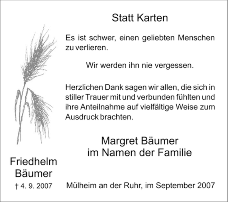Pflanzen Sie einen Gedenkbaum für Friedhelm Bäumer
