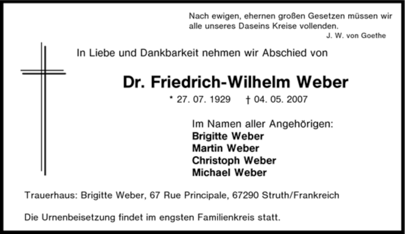 Pflanzen Sie einen Gedenkbaum für Friedrich-Wilhelm Weber