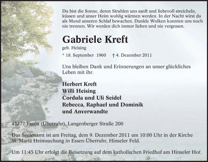 Pflanzen Sie einen Gedenkbaum für Gabriele Kreft