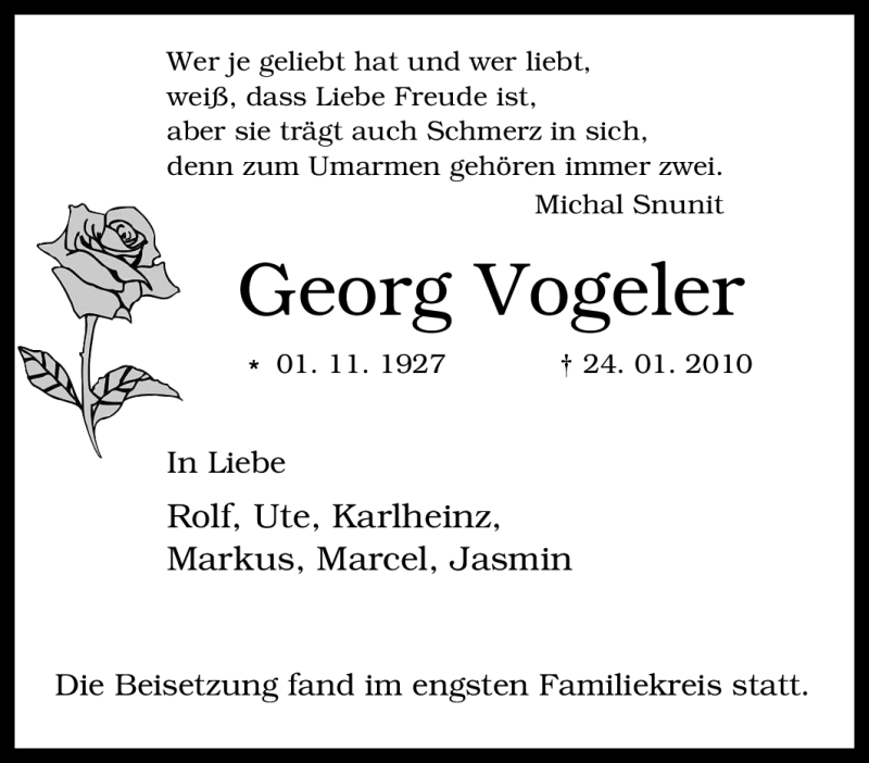 Im Gedenken an Herta Vogeler Georg Vogeler 11.12.2000 24.01.2010