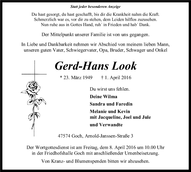 Pflanzen Sie einen Gedenkbaum für Gerd-Hans Look