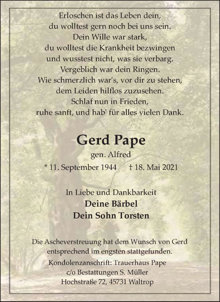 Pflanzen Sie einen Gedenkbaum für Gerd Pape