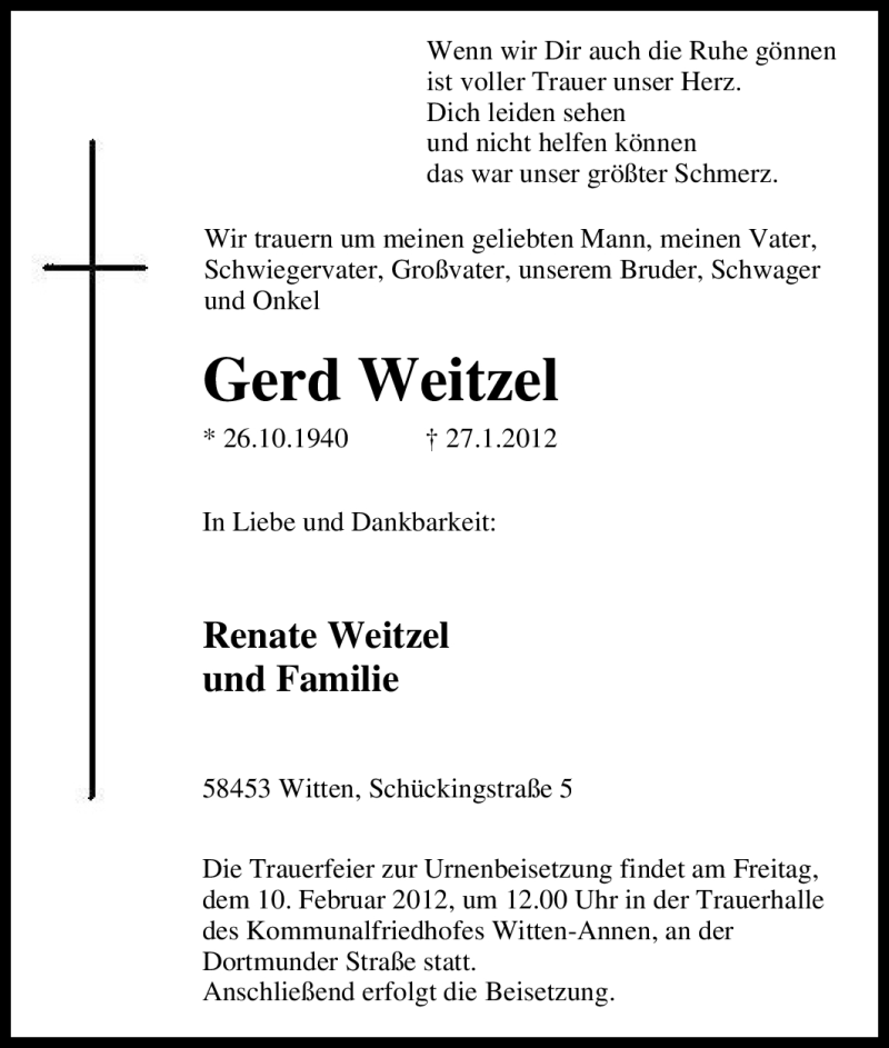 Pflanzen Sie einen Gedenkbaum für Gerd Weitzel