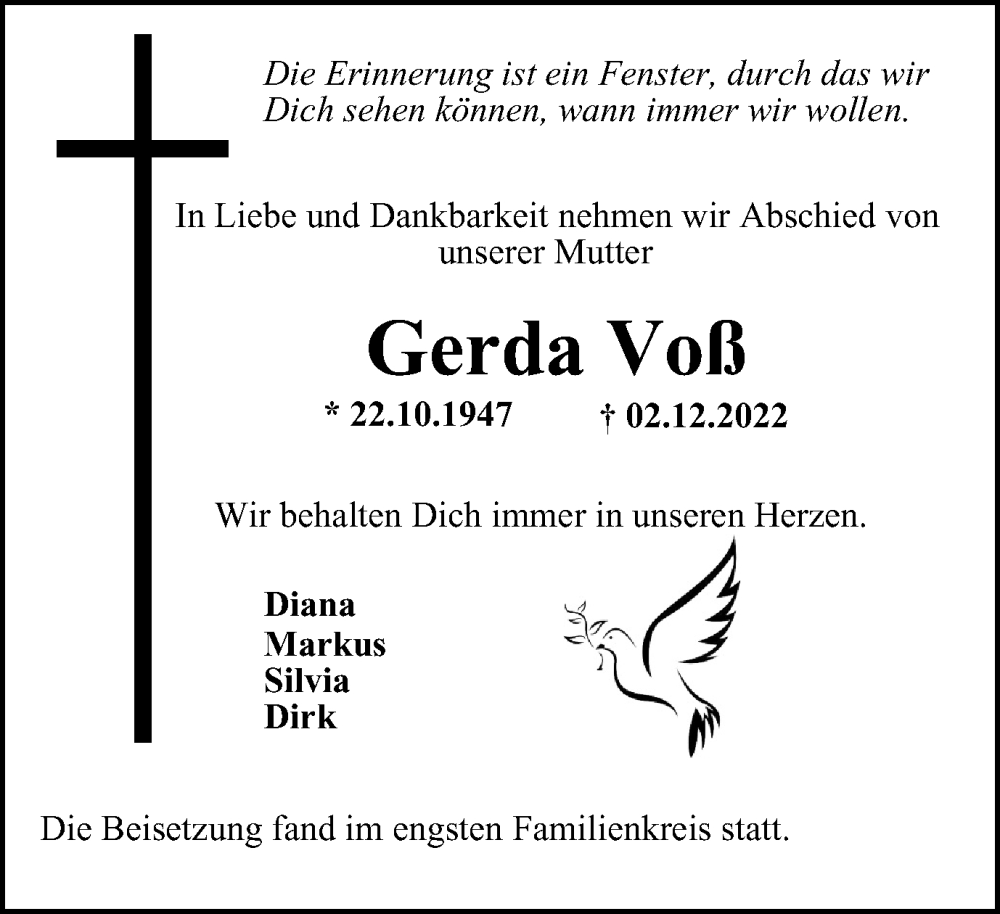 Pflanzen Sie einen Gedenkbaum für Gerda Voß